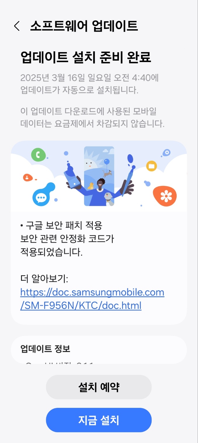 | 갤럭시 Z 폴드 6 & Z 플립 5 | 4월 내 업데이트 예정 |