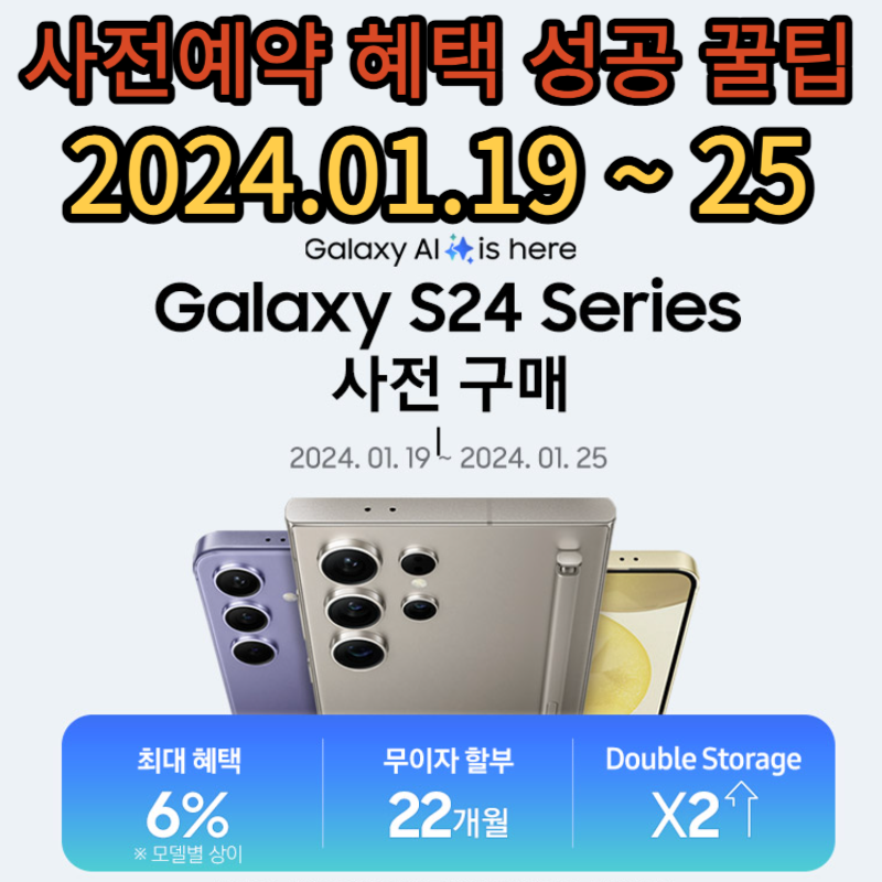 이번 포스팅에서는 갤럭시S24 사전예약 기간 과 사전예약 성공 꿀팁 그리고 사전예약으로 받는 할인과 사은품 혜택에 대해 상세히 알아보겠습니다.