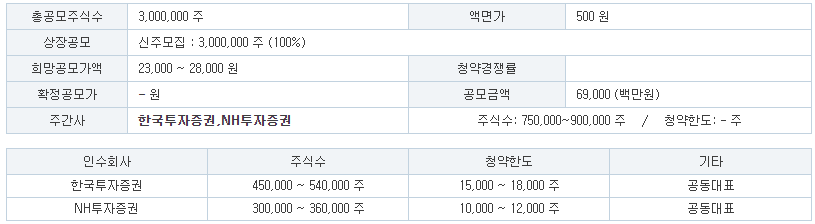 더본코리아의 희망공모가는 주당 23,000원으로 설정되어 있습니다. 공모주식 수는 약 300,000주로 예상되며, 이를 통해 약 115억 원의 자금을 모집할 계획입니다. 이는 기업의 신규 사업 확장과 부채 상환 등의 목적으로 활용될 예정입니다. 공모가는 지난 몇 년간의 기업 성장률과 시장 상황을 반영한 결과로 보입니다. 이는 투자자들에게 투자 매력도를 높이는 요소로 작용할 것입니다.