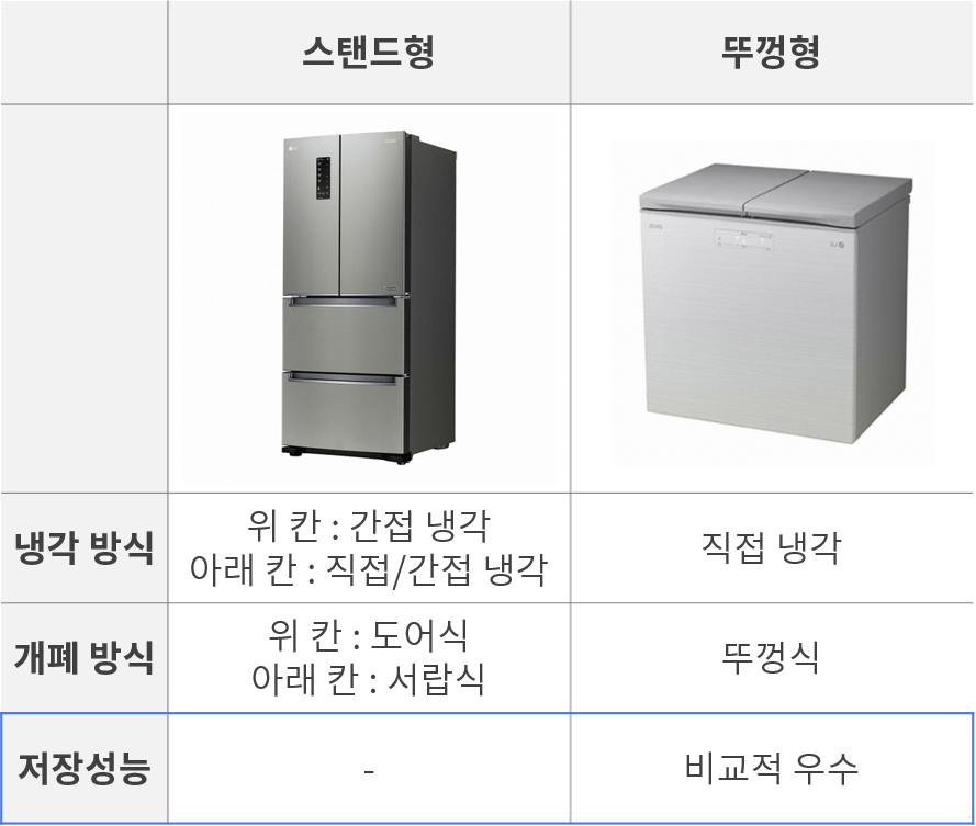 - 정온 유지의 어려움 : 스탠드형은 간접 냉각 방식을 사용하는 경우가 많아, 온도 유지가 뚜껑형에 비해 불리합니다.