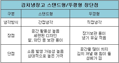스탠드형과 뚜껑형 김치 냉장고는 각각의 장단점이 있습니다. 스탠드형은 공간 활용과 디자인 면에서 우수하지만, 냉기 손실과 가격 면에서 단점이 있습니다. 반면, 뚜껑형은 온도 유지가 뛰어나지만, 공간 활용이 떨어질 수 있습니다.