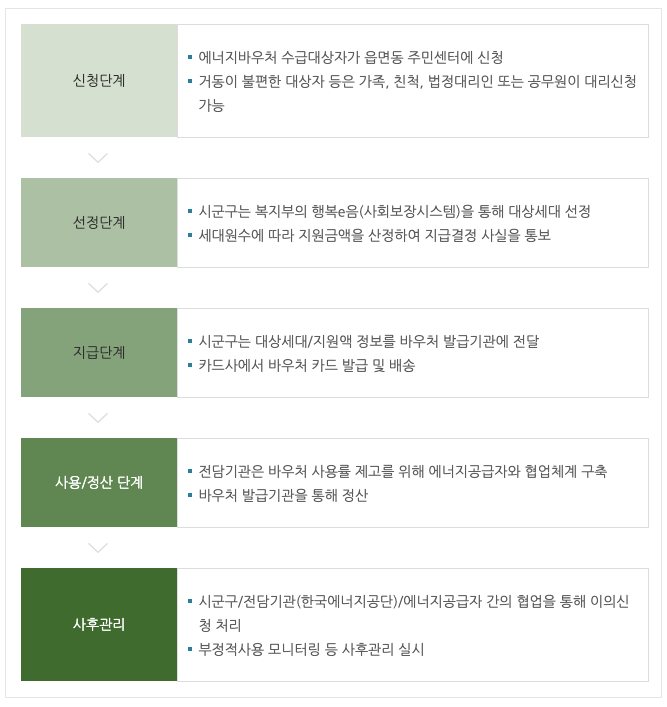 | 2023년 10월 11일 ~ 2024년 4월 30일 | 요금차감 : 전기, 도시가스, 지역난방 중 1개 국민행복카드 : 등유, LPG, 연탄, 전기, 도시가스 |