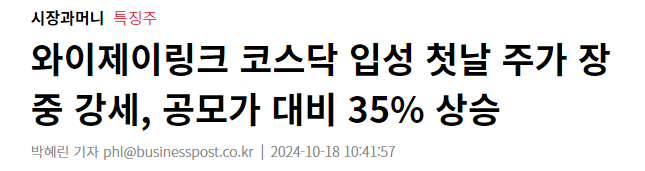 이번 포스팅에서는 와이제이링크 주식 상장 후 주가 동향 및 회사를 분석 한 내요을 상세하게 알려드리겠습니다.