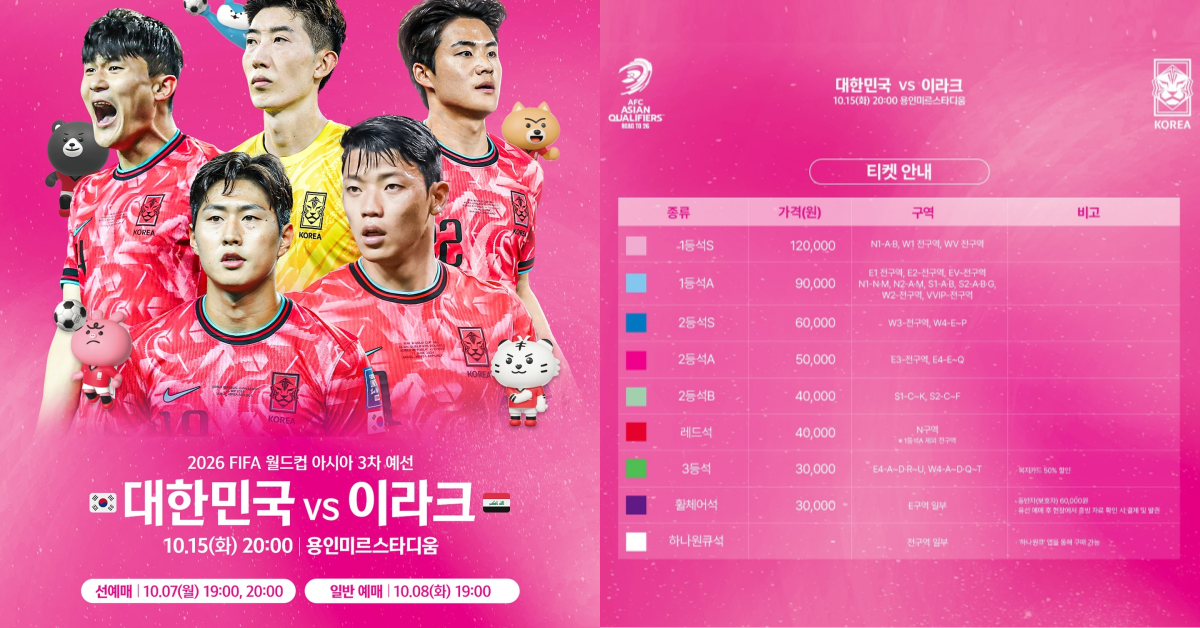 티켓 예매는 대한축구협회(KFA) 공식 웹사이트를 통해 진행됩니다. 예매는 10월 1일부터 시작되며, 팬들은 미리 예매를 통해 좋은 자리를 확보할 수 있습니다. 예매 시에는 브라우저의 팝업 차단 해제를 꼭 확인해야 합니다.