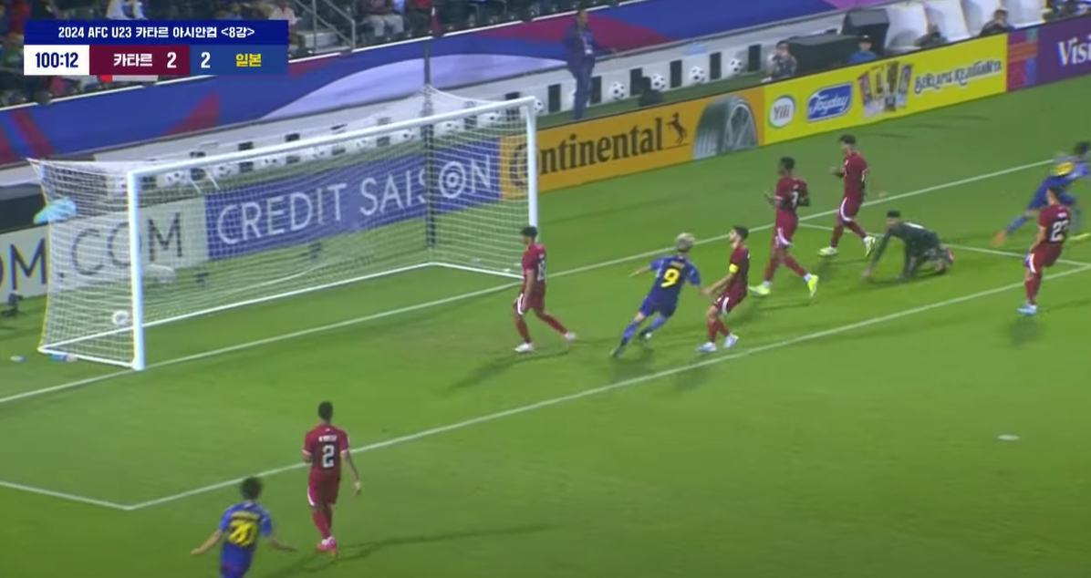이후 일본은 2-2 로 동점을 만들고 줄기차게 공격을 시도하였으나 정규시간까지 골을 넣지 못하고 연장으로 가게 되었습니다.