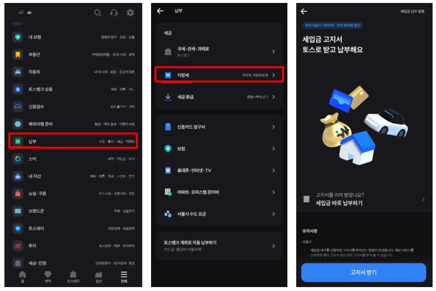 - 세입금고지서 토스로 받고 납부해요 실행