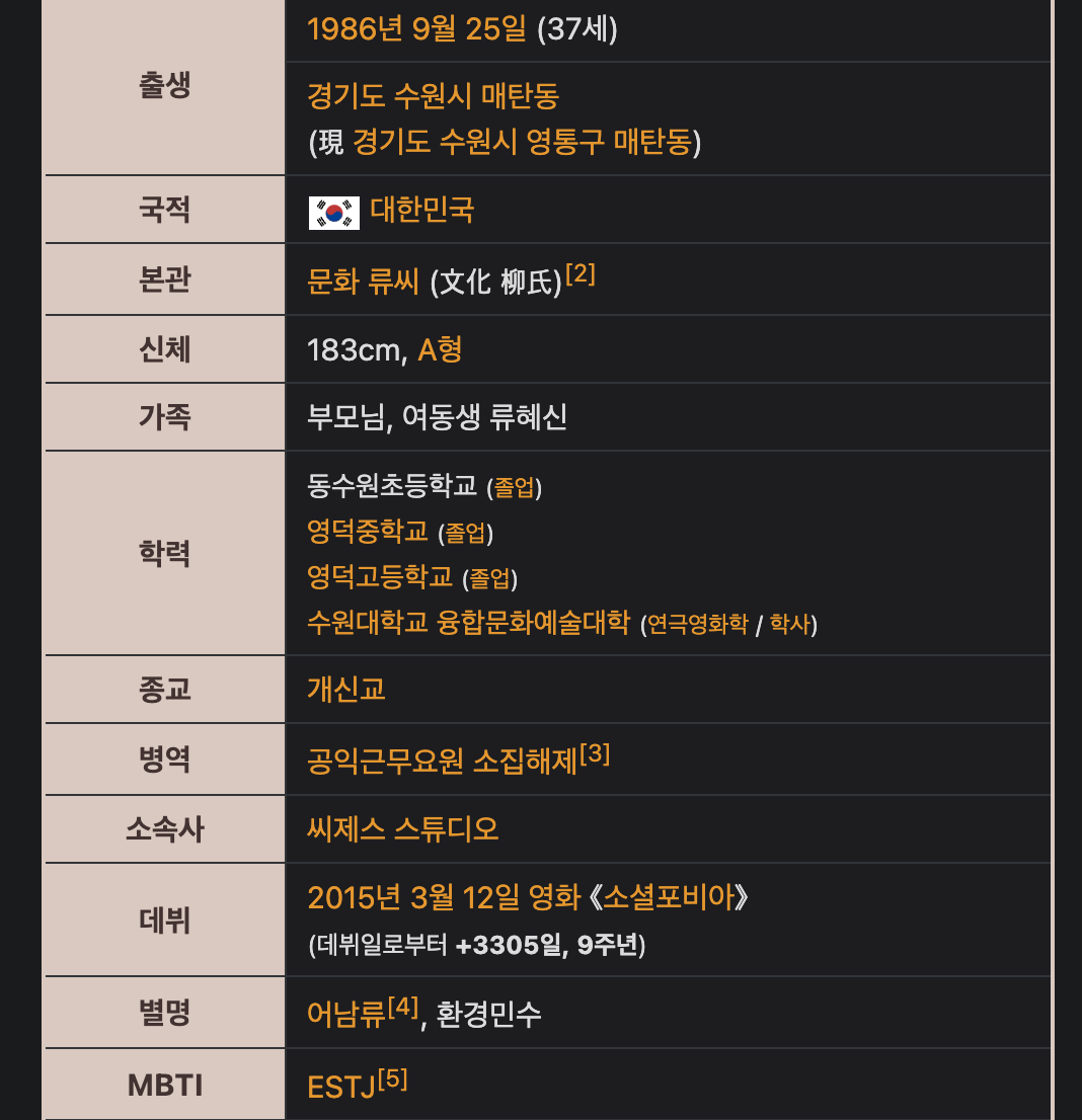 나무위키에서 가져와본 류준열의 프로필입니다.