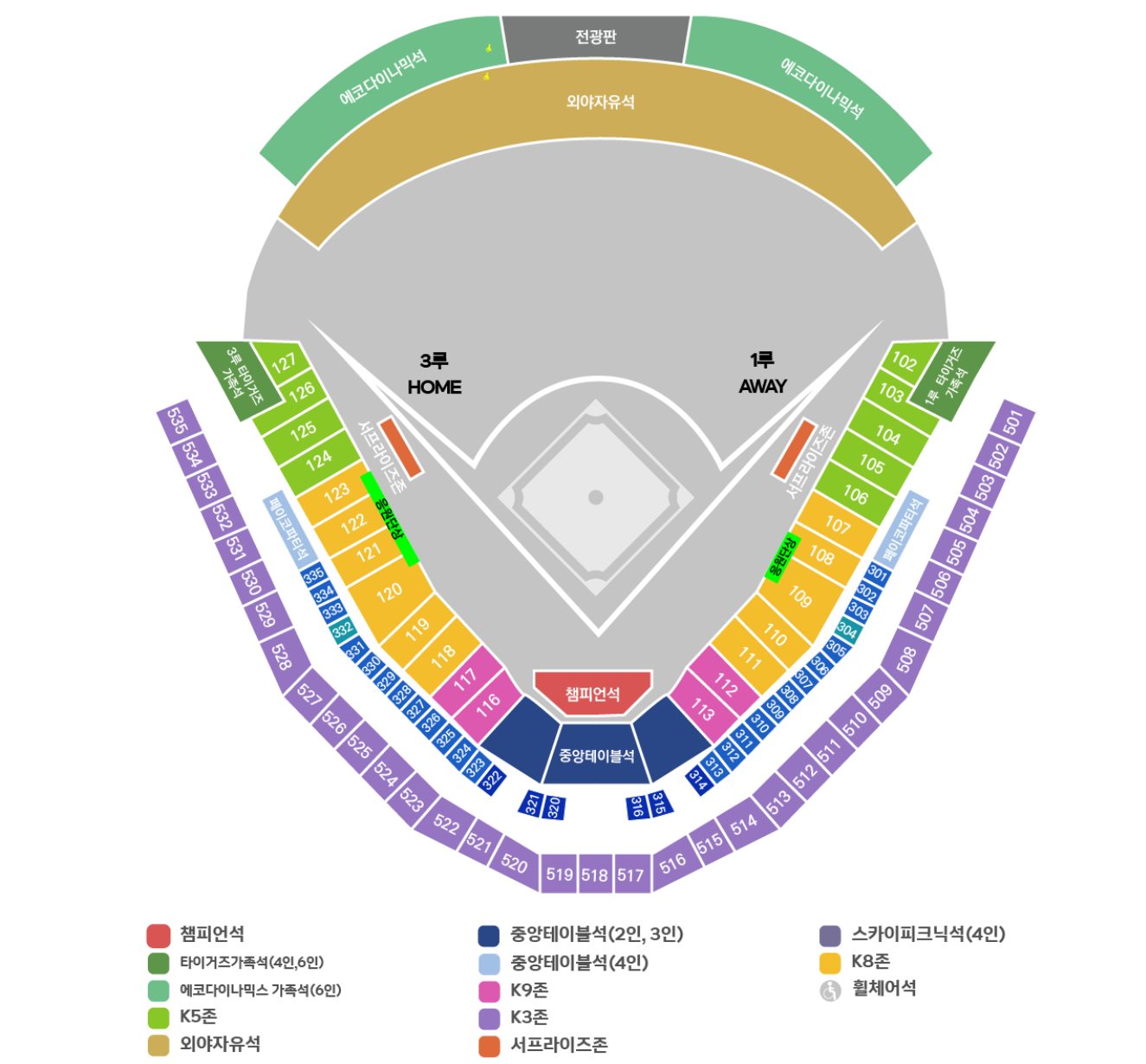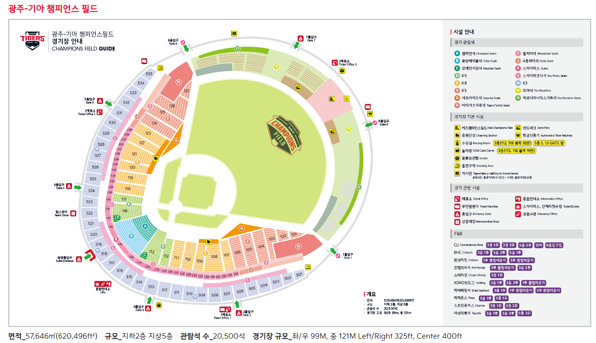 KIA 챔피언스필드 좌석 배치 상세 정보