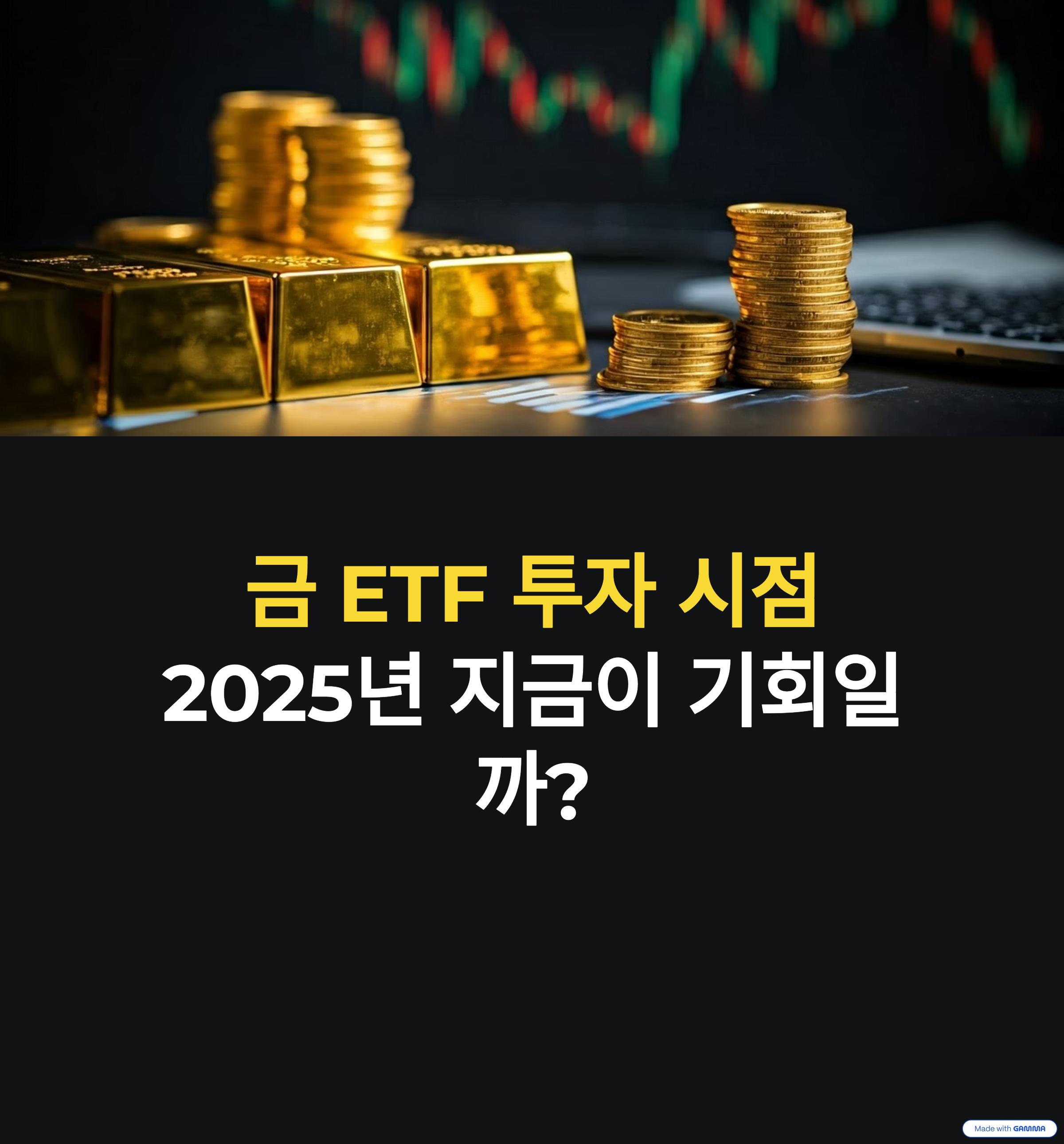 본 글은 글로벌 경제 불확실성, 인플레이션, 달러 약세 등 금 시장을 움직이는 주요 요인을 분석하고, 금 ETF 투자 매력과 리스크 요인을 균형 있게 설명라고 2025년 현재 금 ETF 투자가 지금 적기인지 상세히 설명합니다.