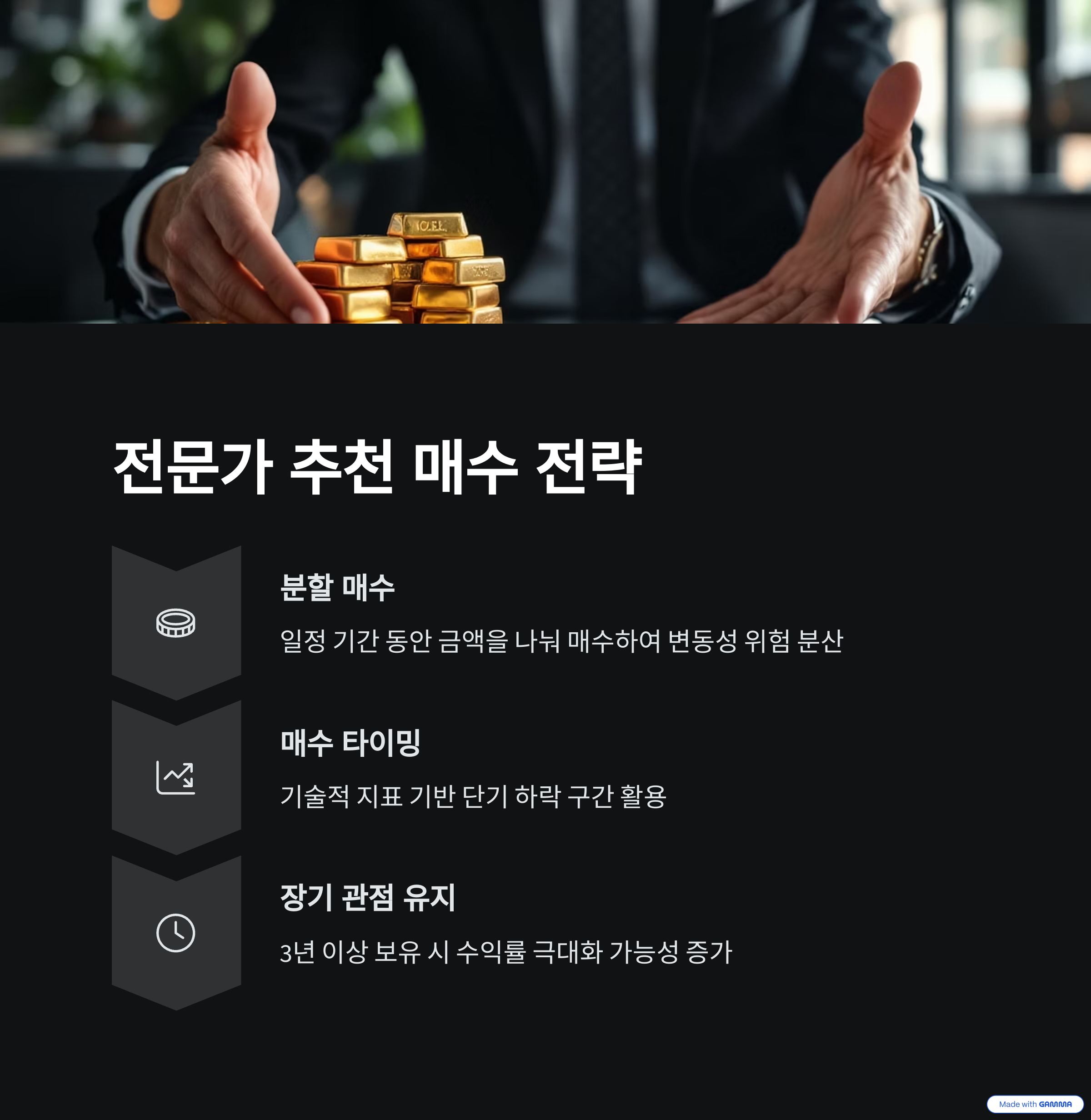 전문가들은 "분할 매수 전략"을 적극 권장합니다.