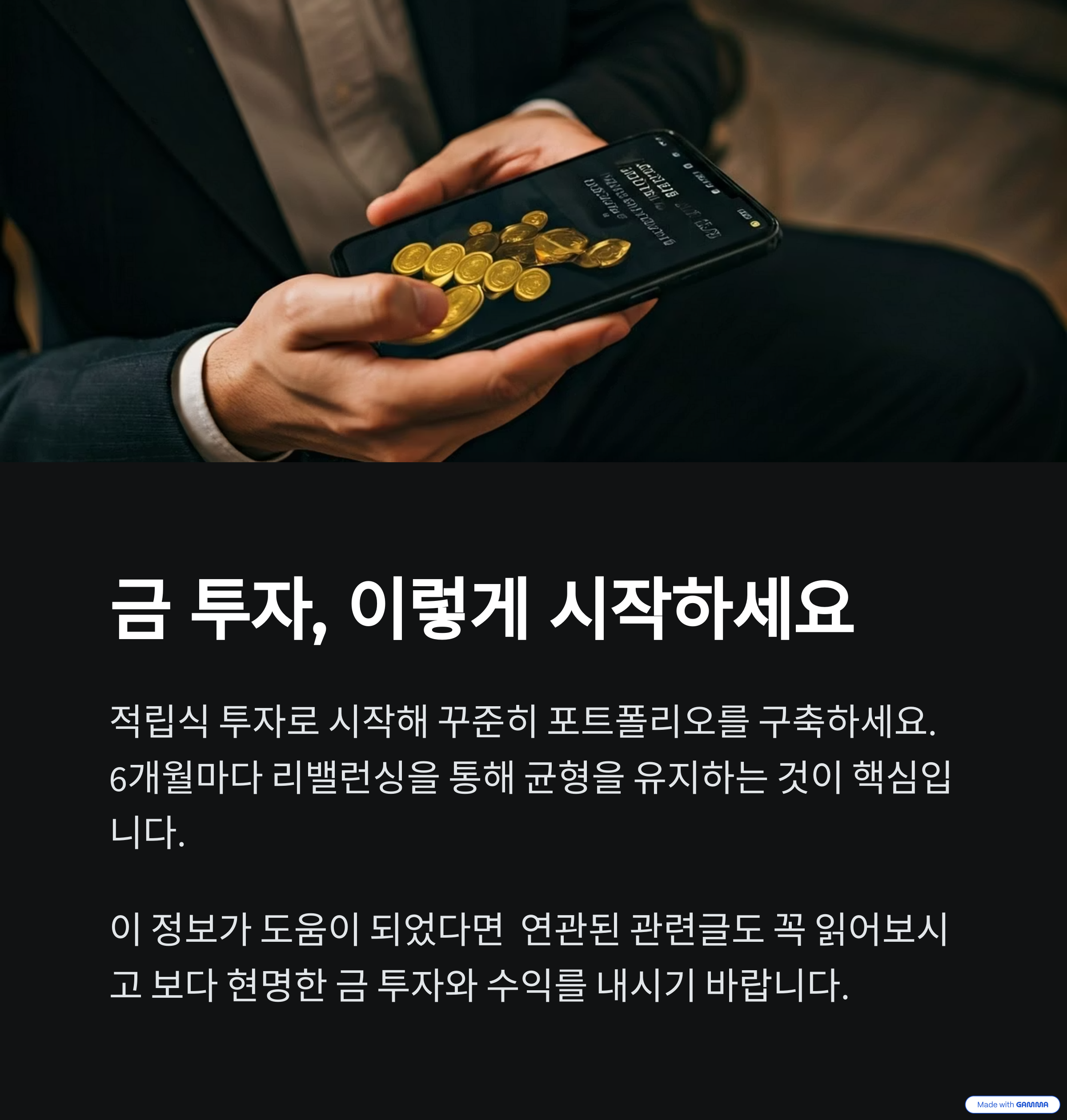 "성향에 맞는 구성으로 금의 안전성과 ETF의 효율성을 동시에 잡으세요." 🔄