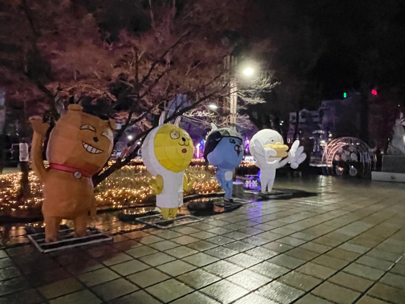 두 번째 포토존은 눈구슬 설치물(스노우 글로브 존)입니다. ❄️ 눈구슬 속에는 귀여운 눈으로 만들어진 작은 집들과 "TAE" 및 "BAEK"라는 커다란 알파벳 장식이 있어 촬영 장소로 딱이죠! 가족 단위 방문객들이 이곳에서 촬영하는 것을 특히 선호합니다. 눈구슬 속의 아기자기한 장식들과 포근한 분위기가 어우러져 따뜻한 겨울의 추억을 남기기에 제격입니다.